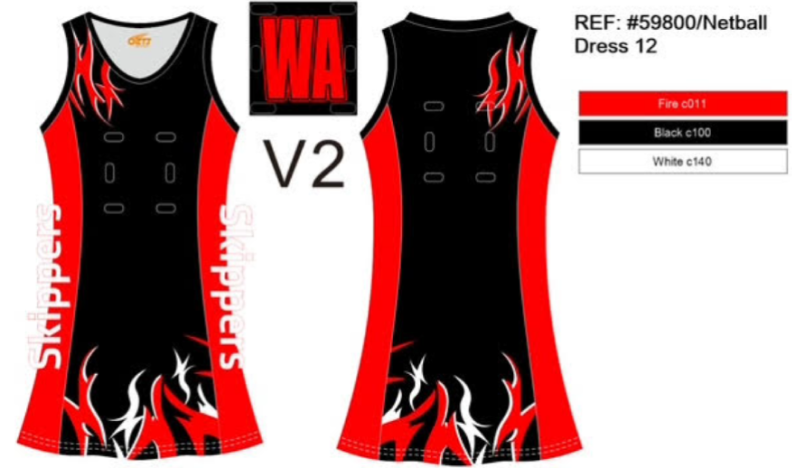 All U9 teams wear a red T-shirt and black skirt or shorts. After that, teams may choose to wear the Richmond Skippers Netball Dress, provided the team agrees, as it can be an expensive purchase. The club encourages swapping or sharing second-hand uniforms with younger players to help keep costs down.